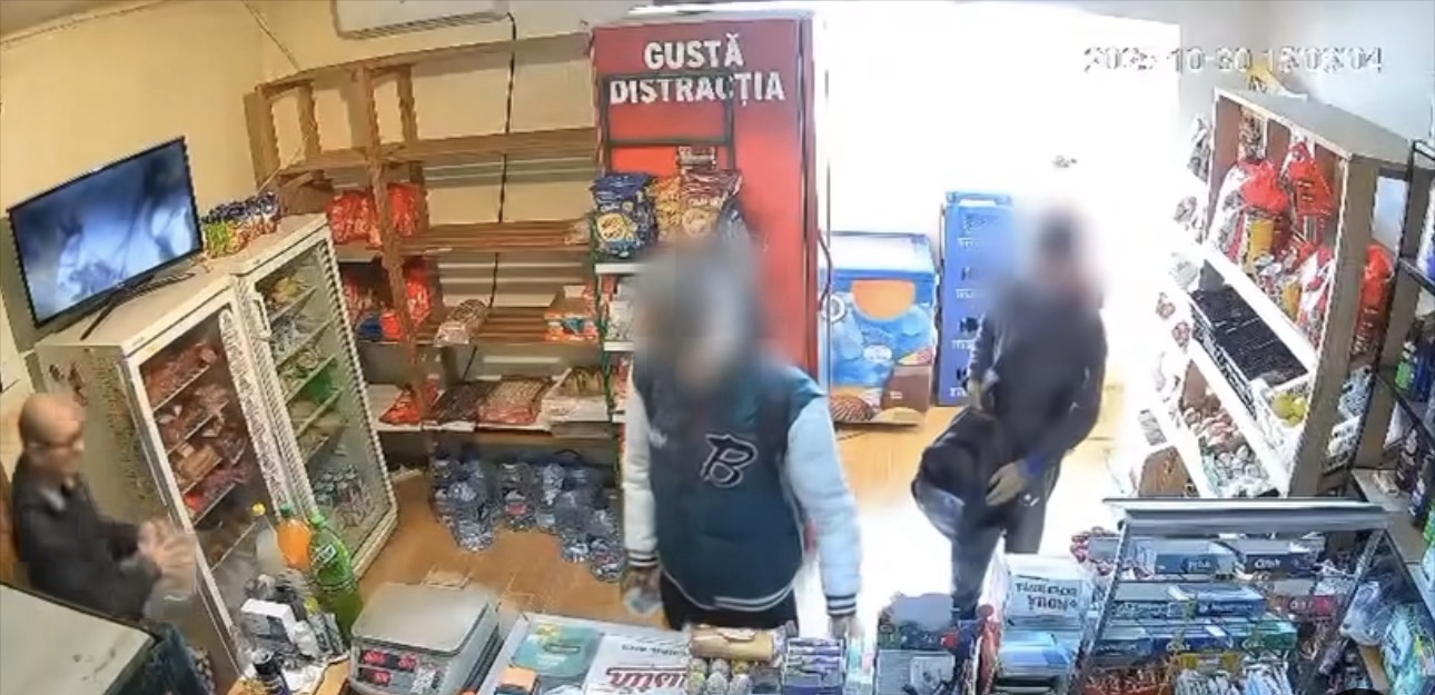 Unul dintre tineri a distras atenția vânzătorului, în timp ce altul a furat produse de pe rafturi, iar al treilea a păzit zona pentru a evita orice surprize.