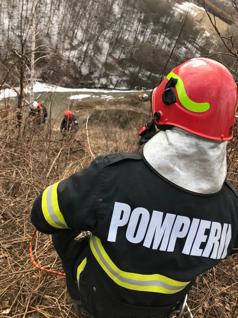 Când au ajuns la locul indicat, pompierii au constatat că animalul era blocat pe stânci, lângă o carieră de piatră, la o înălțime de aproximativ 70 de metri față de șosea, prin urmare, au solicitat intervenția echipajului de alpiniști.