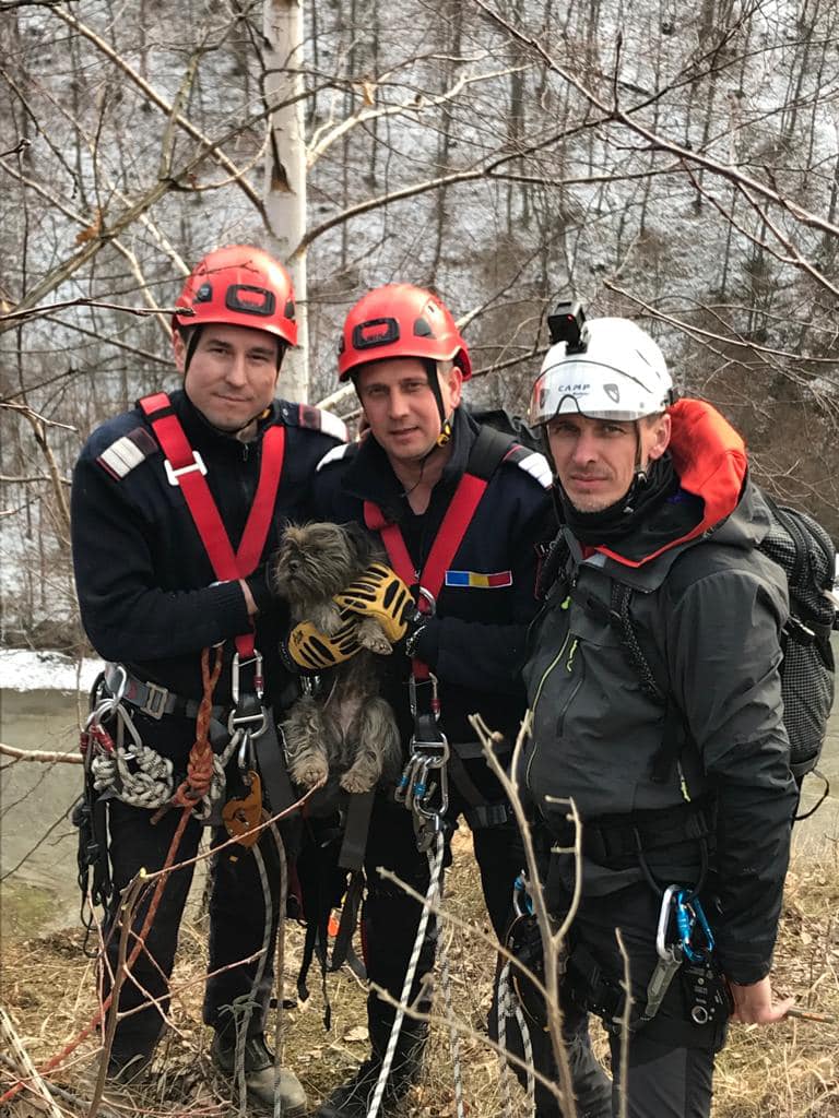 FOTO Misiune dificilă pentru salvarea unui cățel