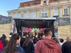 În acest weekend, la Timișoara a fost celebrată cultura romilor prin spectacole muzicale și diverse evenimente. Duminică seara, timișorenii au avut parte de o reprezentație pe măsură susținută de formația Mahala Rai Banda, în Piața Unirii.