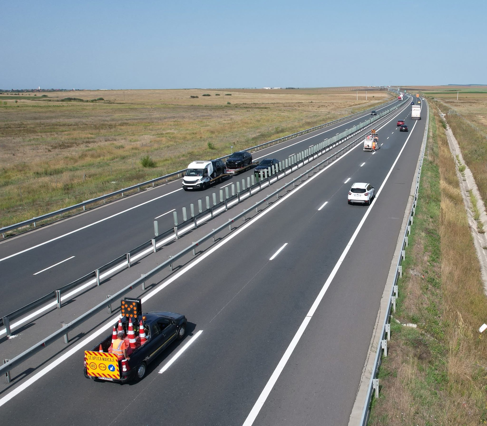 ➡️ între orele 10 – 19, între km 540 – km 525, sensul Arad – Timișoara se refac longitudinale axiale. Se circulă pe banda de urgență și pe banda 1. Banda 2 este restricționată până la finalizarea lucrărilor;