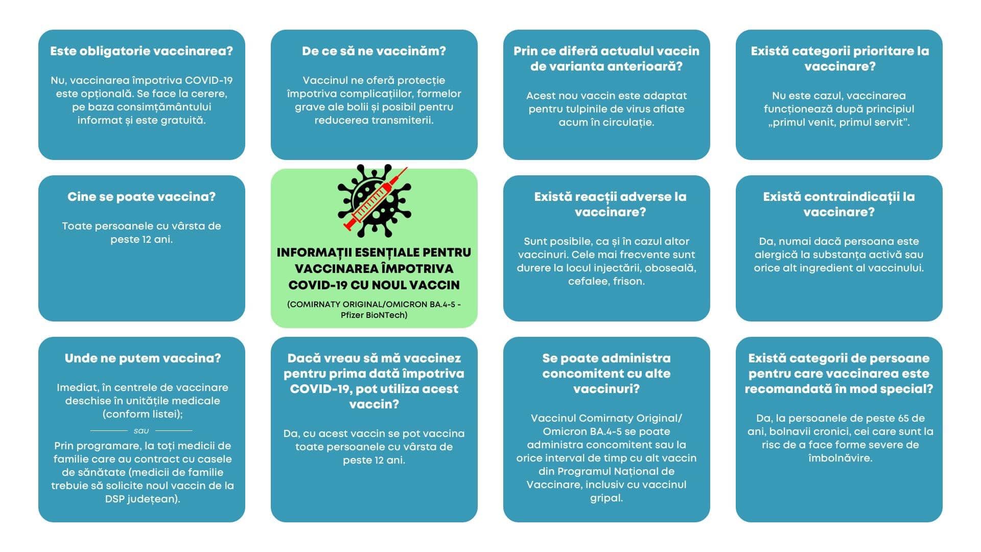 În urma deciziei Comitetului Național de Vaccinologie, în mod similar cu alte țări europene, noul vaccin COVID-19 (COMIRNATY ORIGINAL / OMICRON BA.4-5-Pfizer BioNTech) este disponibil și pentru persoanele care doresc să se vaccineze pentru prima dată. Până recent, acest tip de vaccin era folosit doar la revaccinare, pentru persoanele cărora li se administrase schema primară de vaccinare împotriva COVID-19.
