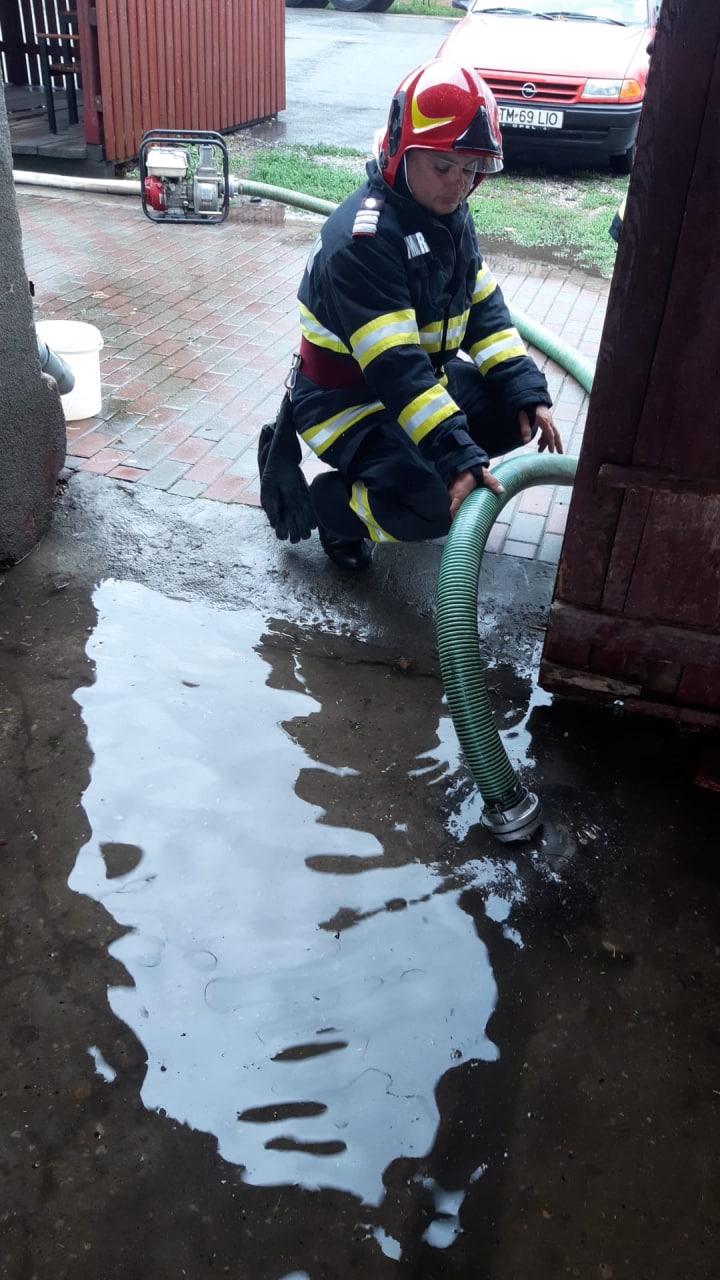 În urma ploii abundente, 4 pompieri din cadrul Stației Făget au intervenit pentru extragerea apei dintr-o curte inundată.