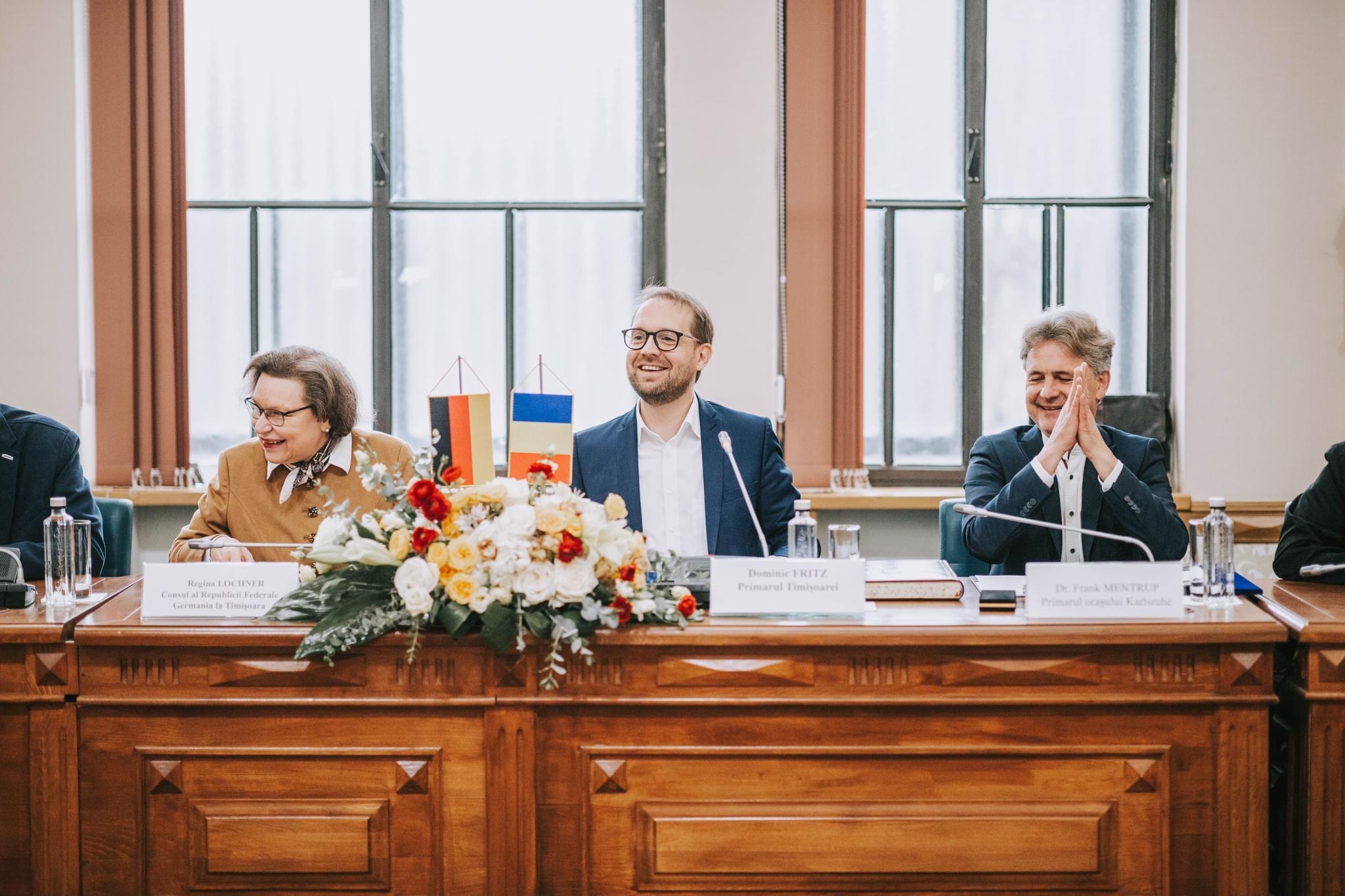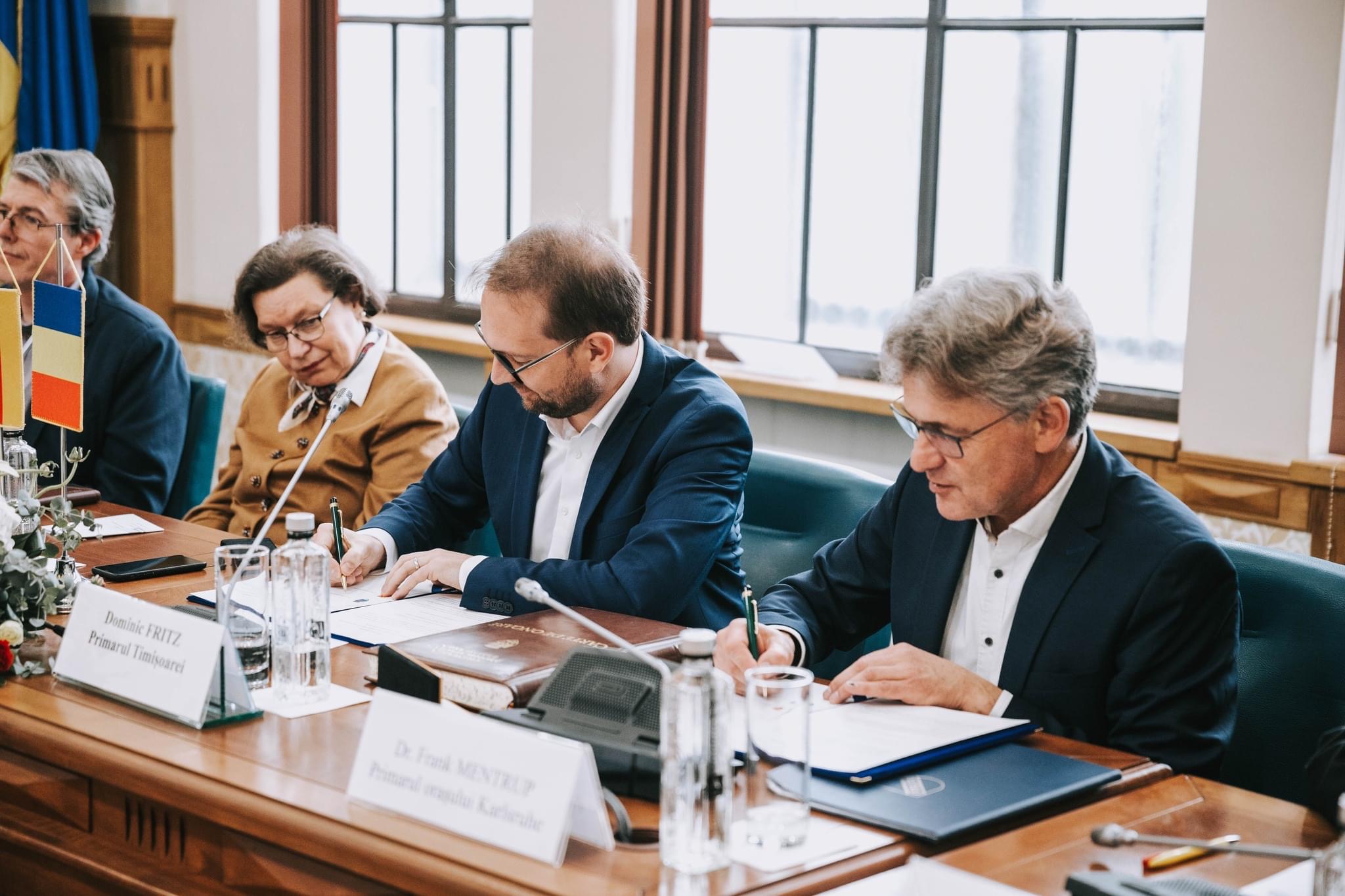 O delegație extinsă condusă de primarul orașului Karlsruhe, Frank Mentrup, s-a aflat azi la Primăria Municipiului Timișoara, pentru a celebra 30 de ani de înfrățire a celor două orașe.
