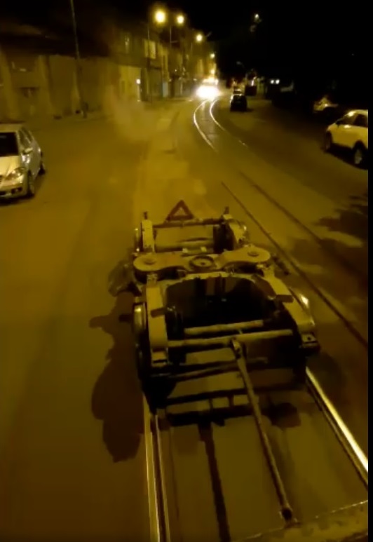 De 2-3 ori pe săptămână, STPT realizează acțiunile de curățenie cu un vehicul specializat pentru a curăța de praf și murdărie șinele de tramvai.